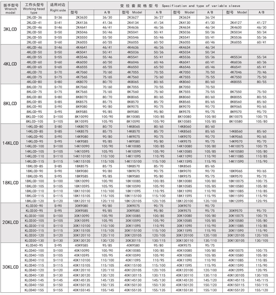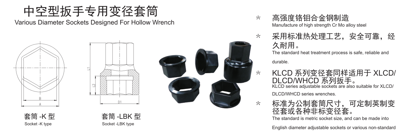3. The KLCD series variable diameter sleeve is also suitable for XLCD/DLC/WHCD series wrenches